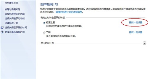 进入控制面板-->硬件和声音-->电源选项,并点击“更改计划设置”。